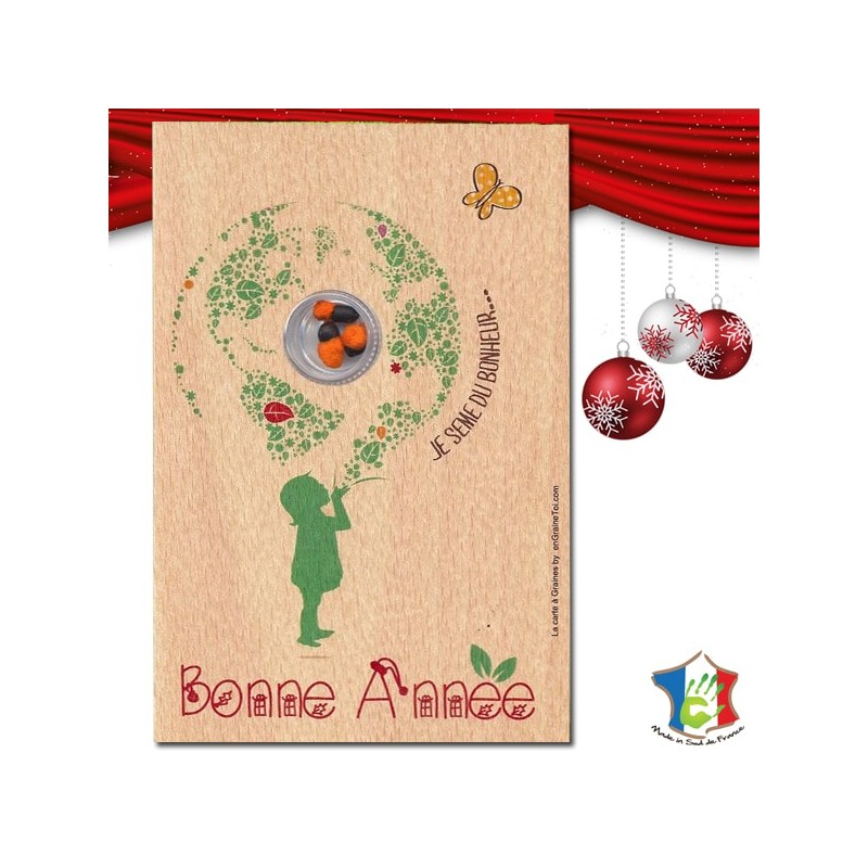 - Dimension de la carte à Graines "Bonne Année": 10x15cm (feuille de bois)