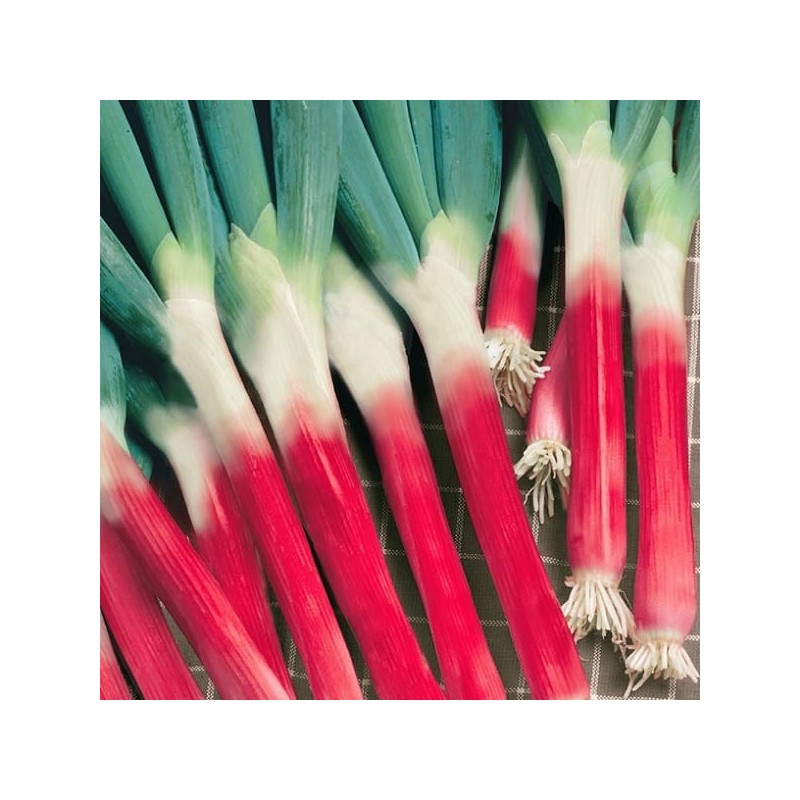 L'oignon-Poireau Red Toga est une superbe variété de type oignon tige, croisement entre le poireau et la ciboule. Elle produit de grandes tiges fortement teinté de rouge au feuillage vert foncé d'environ 30 cm, sans bulbe.