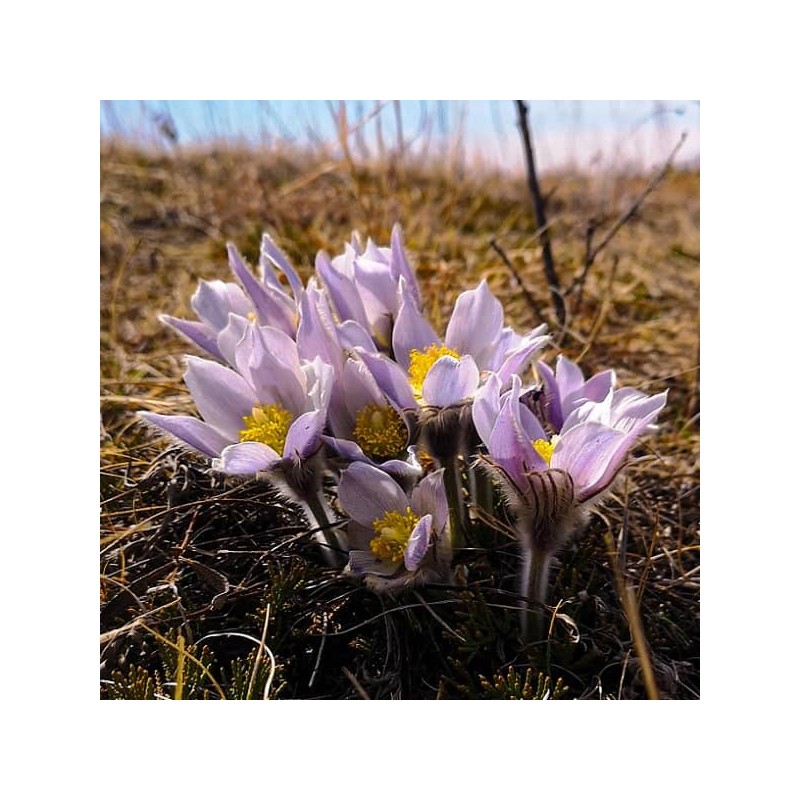 Le Crocus des prairies (Anemone patens wolfgangiana) est une vivace qui produit dès le début du printemps de jolies fleurs couleur lavande similaires à celles des crocus. Les feuilles poilues très divisées émergent du sol une fois la floraison terminée.
