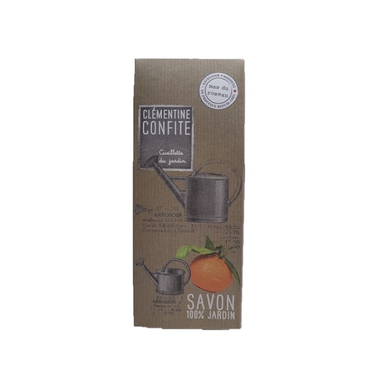 Le Savon 100% jardin Clémentine confite est un savon artisanal et naturel fabriqué par la Savonnerie Mas du Roseau à Saint-Chamas en Provence dans les Bouches du Rhône. A l'huile d'olive naturelle végétale, aux huiles essentielles et sans colorant, ce savon prendra soin de vos mains après une journée de jardinage.
